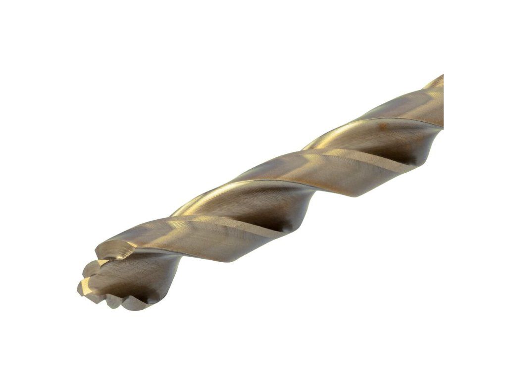 Obsah 8 % kobaltu udržuje ostřejší pracovní hrany vrtáku a zaručuje 4x delší provozní životnost ve srovnání s černými vrtáky