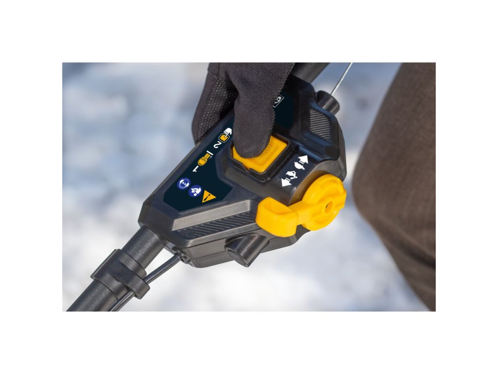 Žlutý bezpečnostní klíč, který zabraňuje náhodnému spuštění a musí být vložen pro aktivaci sněhové frézy
